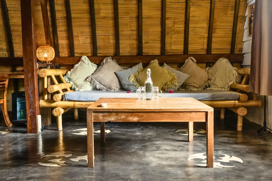 Why choose it? You'll enjoy a private terrace with a sofa bed, air conditioning, and a lush view of the shared pool. Like all our bungalows, the bathroom features an outdoor rain shower surrounded by tropical greenery. Discover how our eco-conscious hotel in Gili Air offers space, comfort, and a boho-chic island vibe—all in one unforgettable stay.